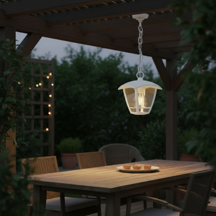 BRAYTRON elegantna viseća lampa u beloj boji donosi klasičan, ali moderan izgled svakom eksterijeru