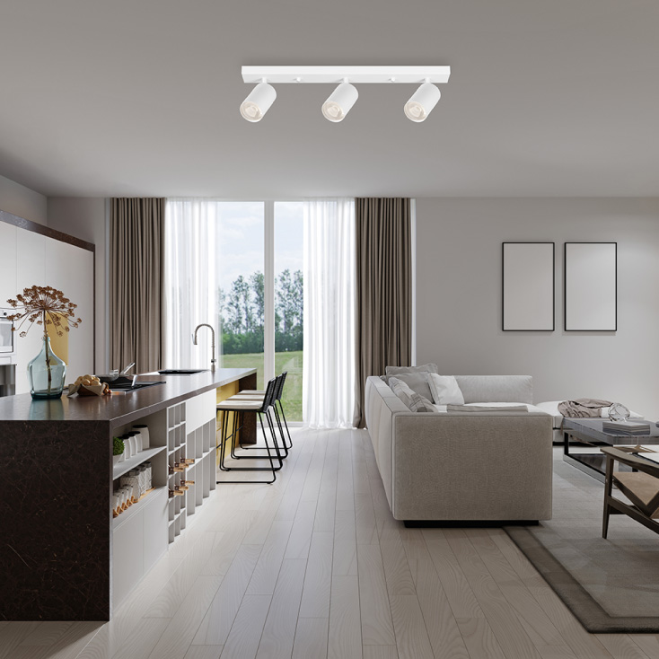 Sa tri GU10 grla od po 35 W, pruža dovoljno svetla za osvetljavanje ključnih delova prostora (sijalice se prodaju zasebno)