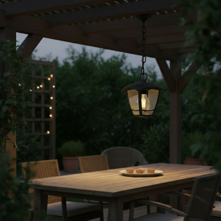 BRAYTRON elegantna viseća lampa u crnoj boji donosi klasičan, ali moderan izgled svakom eksterijeru