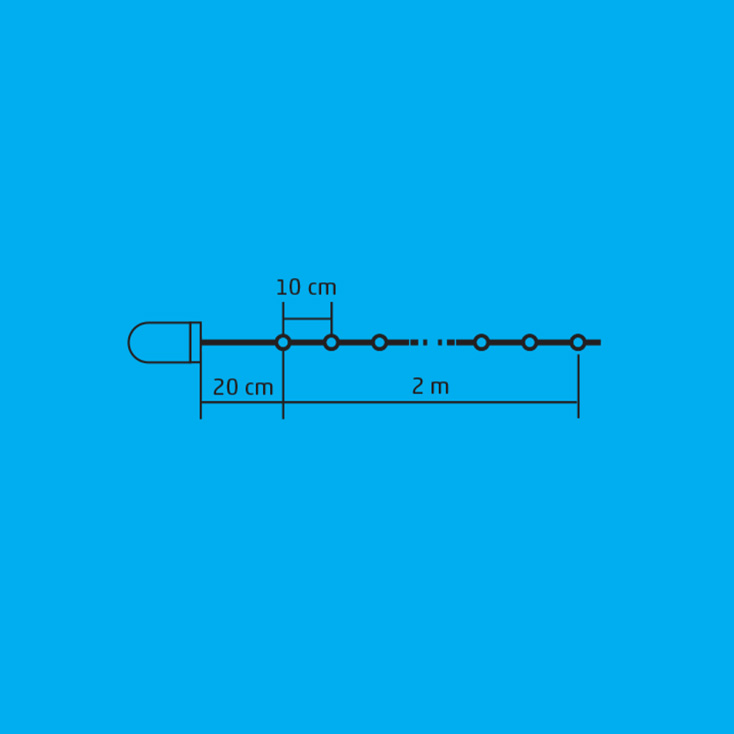 Dimenzije: 2 m (dužina niza), 10 cm (razmak između dioda)