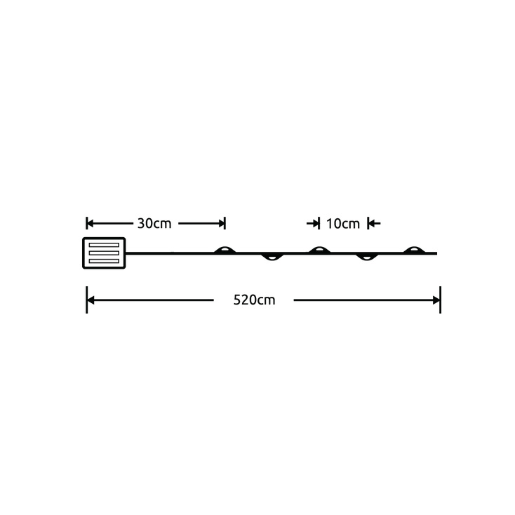 Svetlosni niz je opremljen srebrnim kabelom dužine 5 metara, na koji je postavljeno ukupno 50 LED dioda na svakih 10 centimetara