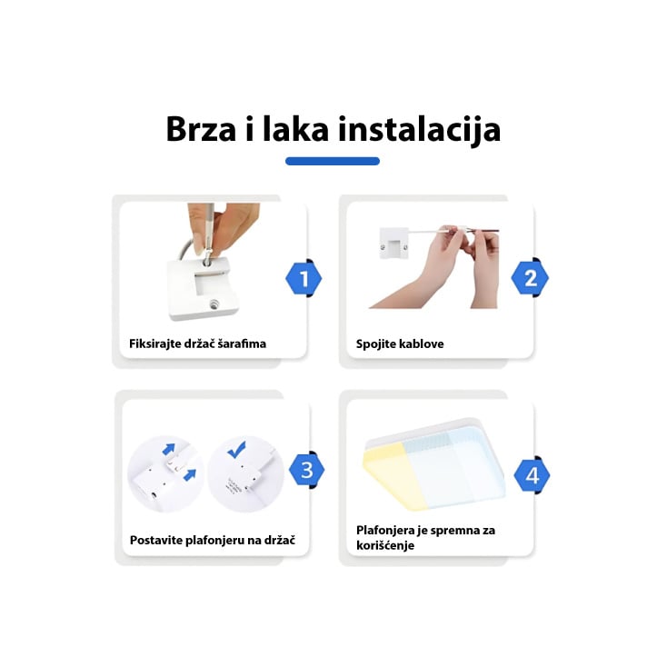 Ima mogućnost odabira boje svetlosti (toplo bela, hladno bela, dnevna svetlost), što omogućava podešavanje prema Vašim potrebama i pravljenje različite atmosfere u prostoriji