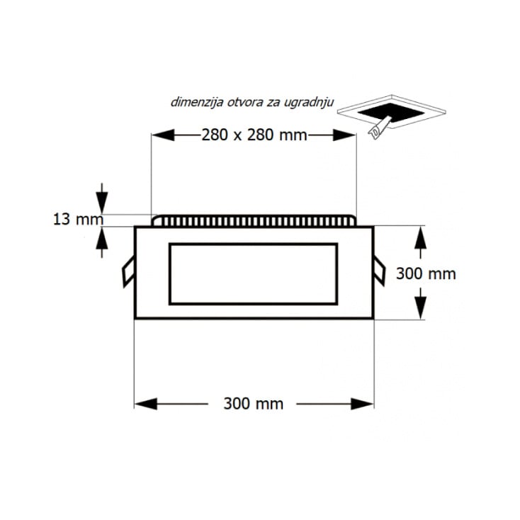 Dimenzije: 300x300x13, ugradna 280×280 mm