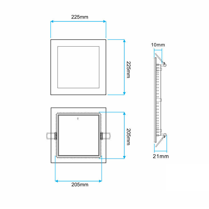 | Dimenzije | 225×225 mm, ugradna 205×205 mm |