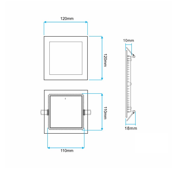 | Dimenzije | 120×120 mm, ugradna 110×110 mm |