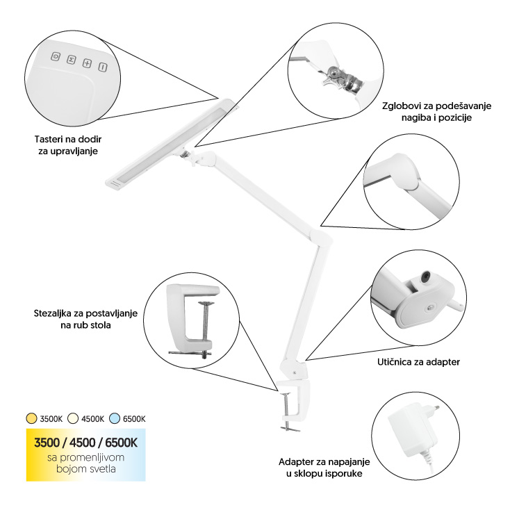 Prilagodljiva boja svetlosti za svaki zadatak (toplo bela, hladno bela i dnevna svetlost)