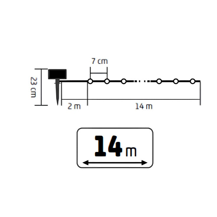 Dekorativni LED niz sa 200 toplo belih dioda, sa solarnim napajanjem