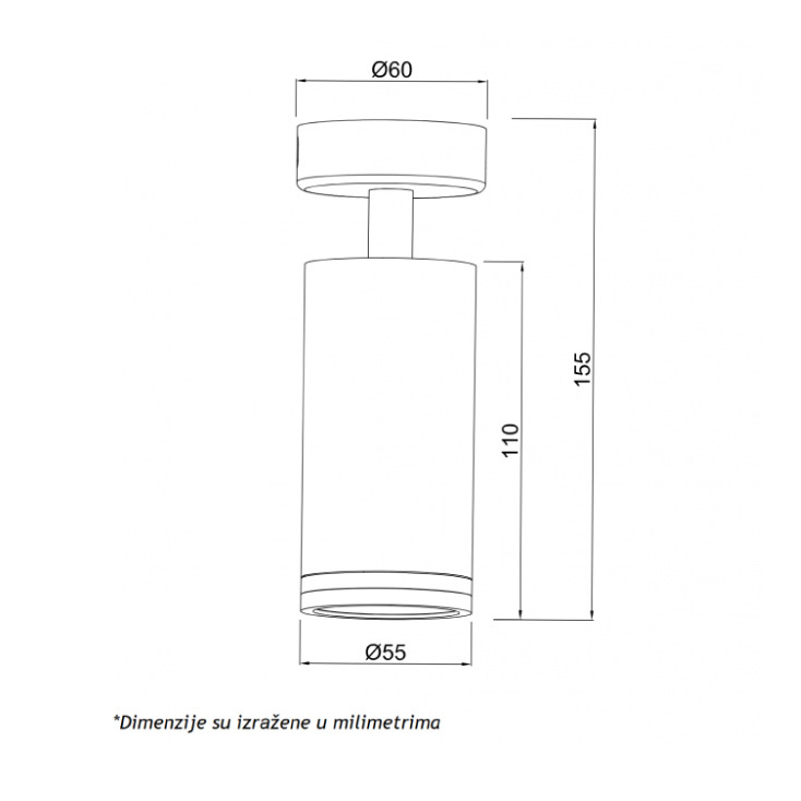 Maks. snaga obične sijalice koja se može koristiti je 35 W (preporučuje se upotreba LED sijalica)